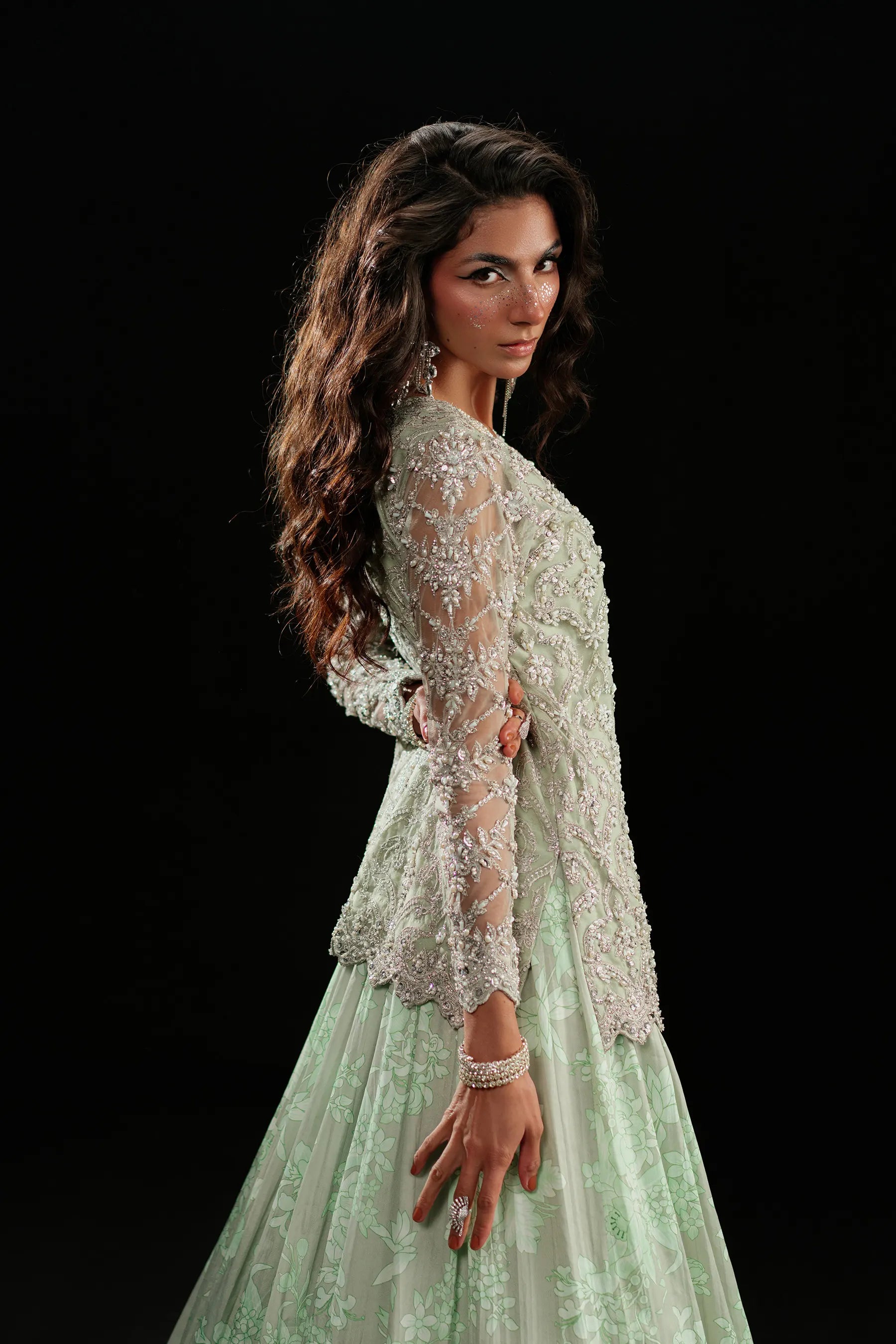 Minty Printed Lehnga And Jewelled Jacket Set (D-05)